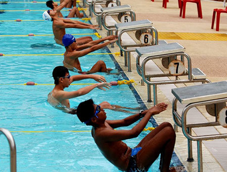 Swimming is an individual or team racing sport that requires the use of one’s entire body to move through water. The sport takes place in pools or open water.