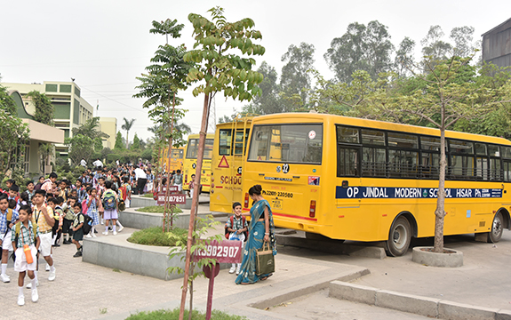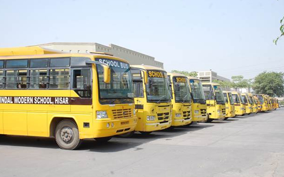 School has its own fleet of 54 buses which ply on the routes decided by the school. The school buses serve all major residential areas of the city. The routes of the school buses are drawn up keeping in mind the needs of the parents, and they should consult the school transport-in-charge for details. The routes and pickup points are displayed on the notice board of the school. Parents desirous of availing this facility indicate their willingness in the appropriate column in the admission form.