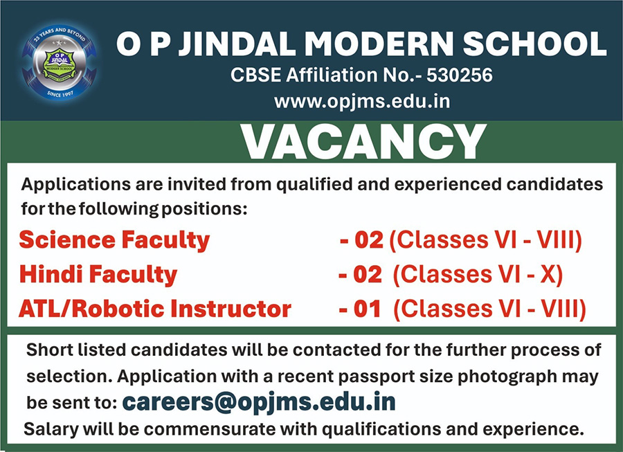 As one prepares to embark on professional journey, one dreams of a work environment and culture that is par excellence- stress free, facilitating professional growth, vision, team-spirit, interpersonal skills, staff welfare, handsome salary, enrichment workshops & seminars, state-of-the-art infrastructure and above all a conducive atmosphere for teaching learning experience through exposure to the latest technological developments- all this and plenty more is available at OPJMS. Everything out here leaves you happy and contented, looking forward to each day with a child-like enthusiasm and the zeal to keep moving ahead in pursuit of excellence in all areas of school functioning.